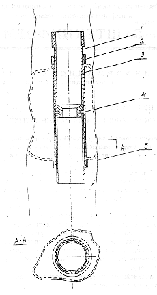 Описание 66-99 Пакерующее устройство включает фильтрующий рукав 3, закрепленный колльцами 2 на обсадной трубе 1 того же диаметра, что и спускаемая в скважину колонна обсадных труб. Пакеровка происходит при нагнетании через клапан 4 цементного раствора в рукав при определенном перепаде давления. Эластичный рукав с цементным раствором заполняет затрубное пространство в месте его установки с плотным прижатиеим к стенкам 5 скважины любой конфигурации - каверны, желоба и т.д. (на рис. показано пунктиром). Фильтрация и уплотнение цементного раствора - камня происходит практичеки моментально, а с выдержкой в течение 3...5 мин пакер способен принимать определенную нагрузку. В дальнейшем несущая способность пакера изменяется только в сторону увеличения. Другим важным преимуществом является способность расширяться до диаметра 1000 мм и более ( в зависимости от диаметра обсадной колонны и конкретных условий применения). Пакер проходной и не имеет сужений; втулка в клапанном узле 4 разбуриваемая. Максимальный наружный диаметр пакера при спуске на трубах диаметром 146 мм составляет 185 мм (т.е. меньше диаметра забойных двигателей, осуществляющих бурение ствола скважины). Предложено несколько вариантов технологических процессов с применением скваженного пакерующего устройства для ступенчатого и манжетного цементирования при бурении наклононаправленных и горизонтальных скважин. |