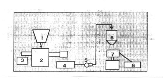 Описание Установка включает в себя (см. рисунок): бункер 1 для семян, маслопресс «Малыш» 2, сборник 3 жмыха, сборник 4 масла с фильтром грубой очистки. Маслонасос 5, напорный маслосборник 6, баромембранный фильтр 7, сборник 8 очищенного масла. В отличие от известных разработанная установка укомплектована новым баромембранным самоочищающимся фильтром. В качестве фильтроэлемента применена керамическая мембрана с размером пор 2-5 мкм. Удельная производительность 5...8 м в степени 3 (м в степени 2 * ч) против 0,005...0,1 м в степени 3 (м в степени 2 * ч) известного фильтр-пресса. Предусмотрена возможность регенерации мембраны, допускается стерилизующая обработка паром. |