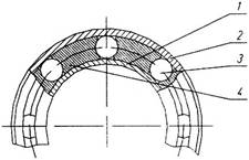 Описание Подшипники нового типа (патент № 2079015 России на изобретение «Комбинированная опора») представляют стандартные подшипники качения, сепаратор которых состоит, в отличие от стандартного, из самоустанавливающихся несущих сегментов - вкладышей (рис. 1). В качестве материала последних могут применяться бронза, пластмасса, резина и другие материалы. Подшипник работает следующим образом. При запуске вся нагрузка, действующая на подшипник, воспринимается телами качения. По мере увеличения скорости вращения между соответствующими поверхностями вкладышей и колец образуется гидро- или газодинамический несущий слой, и подшипник переходит на работу в совместном режиме трения-качения и скольжения, при этом заданная часть действующей на тела качения нагрузки переходит на вкладыши. Подшипник может быть выполнен с автономной системой смазки. Результаты предварительных испытаний опытных образцов подшипников подтвердили прогнозируемые рабочие параметры (рис.2,3). Подшипники имеют повышенные ресурс и надежность. Рис. 1. Подшипник комбинированного типа: 1 - внутреннее кольцо; 2 -наружное кольцо; 3 - тела качения; 4 - вкладыши Рис .2. Момент трения подшипников: 1 - качения; 2 - скольжения;