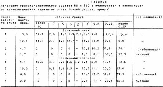 Описание Белитовый шлам (БШ) и сланцевый золошлак (ЗШО), являющиеся известь содержащими отходами, предлагается использовать в качестве сырья для производства мелиорантов. Содержание СаСО 3 + МgСО 3 в БШ составляет не менее 85 и ЗШО - не менее 75%. Карбонатные отходы по нейтрализующей способности удовлетворяет требованиям ГОСТ, предъявляемым к мелиорантам, но не соответствуют нормам воды, гранулометрическому составу и по ряду других показателей. По ГОСТ в мелиорантах должно быть содержание воды: пылящем - 1,5-2%, слабопылящем - 4,0-6,0% и сыромолотом 12,0-17,0% фактическое же содержание воды в БШ может достигать 40, а в ЗШО - до 49%. В пылящем, слабопылящем и сыромолотых мелиорантах остаток гранул на сите в диаметре более 1 мм не должен превышать 3%, 15% и 20% соответственно. Свежий БШ и ЗШО в шламохранилищах взаимодействуют с водой и затвердевают. При их добыче образуются различные по величине отдельности, с преобладанием в БШ размеров в диаметре 100-300 мм - до 65% и в ЗШО - в диаметре менее 100 мм - до 84%. Механическая прочность на сжатие БШ 32 и ЗШО - 4,3 МПа. Схемы переработки БШ и ЗШО в мелиоранты: 1.Щековая дробилка С-182Б ЩС25х40 плюс барабан сушильный СМЦ-428.2. 2.Щековая дробилка С-182Б ЩС25х40 плюс барабан сушильный СМЦ-428.2 плюс мельница "Каменор". 3.То же, что и в 2, но плюс грохот с размерами отверстий 3 мм. 4.Сушильно-дробильный агрегат "Аэрофол". Из данных таблицы видно, что гранулометрический состав и влажность пылящего ислабопылящего мелиорантов соответствуют нормам ГОСТ. Разработаны и испытаны схемы переработки БШ и ЗШО в пылящий, слабопылящий и сыромолотый мелиоранты, которые гигроскопичны, способны поглощать, удерживать и проводить воду, слеживаться, гидратироваться и смерзаться. Кроме того, мелиоранты отличаются хорошей исходной сыпучестью, низкой насыпной плотностью и уплотняемостью, постоянным химическим составом, трудно растворимыми в воде минералами, высокой сорбционной и поглотительной способностью. Основным требованием при хранении мелиорантов является защита от прямого попадания жидких и твердых осадков, поэтому отгрузка мелиорантов должна проводиться насыпью во все виды крытого транспорта или открытым транспортом с покрытием влагонепроницаемым материалом. Сохранение пылящих свойств мелиорантов обеспечивается в складах силосного типа с аэрацией, слабопылящего - в неотапливаемых складах и крытых навесах. Хранение пылящего мелиоранта из БШ под укрытием из полиэтиленовой пленки в течение трех месяцев повышает содержание гранул диаметром более 1 мм на 7,2% и влажность на 3-4%. Хранение пылящего мелиоранта из БШ в неотапливаемом складе штабелем высотой 2,5 м в течение 9 месяцев не повлияло на его грансостав и слеживаемость. Влажность пылящего мелиоранта из ЗШО, хранящегося под пленочным укрытием в течение трех месяцев (март, апрель, май), увеличилась с 2% до 4%, гранулы в диаметре более 1 мм на 2%. Физико-механические свойства пылящего, слабопылящего и сыромолотого мелиорантов из ЗШО сохраняются под слоем 0-60 мм в течение 1 мес. хранения открытым способом. Мелиоранты из БШ и ЗШО не подвергаются смерзанию в диапазоне отрицательных температур минус 18…50 град.Ц. Признаки и смерзаемость мелиорантов при температурах минус 18…50 град.Ц проявляются при влажности 12-15%. |