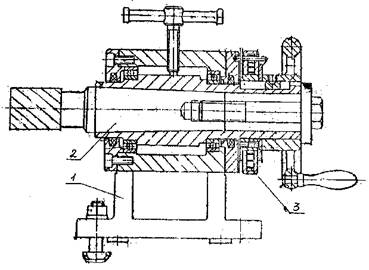Описание Результат конструкторской разработки Предназначено для переточки фрез, не имеющих переднего центрового отверстия. Приспособление состоит из корпуса 1, в котором установлен шпиндель 2 на двух подшипниках. Фреза устанавливается непосредственно в шпиндель или переходную втулку. Необходимый поджим зуба фрезы к упору создается специальной пружиной 3. Диаметр фрезы, мм - 16-50. Использование приспособления позволяет своевременно осуществлять контроль состояния фрез и возможность их перетачивать, повысить качество заточки.