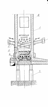 части шахты имеется загрузочное окно 5 для топлива. Рис.1. Газовая вагранка Для разделения негорючей шихты и шахты, где размещается топливо, вводятся с двух противоположных сторон металлические балки 2, выполненные из высокожаропрочного материала. Выше подвижных балок имеется второе загрузочное окно 6 для негорючей шихты. Ниже балок установлены газовые горелки 4. |