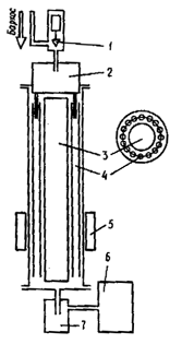 Описание Результат выполнения конструкторской разработки. Установка состоит (см. рис.) из нагревателя 5, который двигается вдоль трубы 4. В трубы из испарителя 2 поступают пары наносимого покрытия из дозатора 1. Для предотвращения конденсации паров труба прогревается по всей длине нагревателем 3, газообразные продукты конденсируются в ловушке 7, несконденсированные газы откачиваются насосом 6. Установка для нанесения покрытия на внутреннюю поверхность труб |