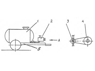 Описание Описание к ИЛ № 24-182-01 Результат выполнения конструкторской работы. Топливозаправщик состоит из одноосного шасси 5 (см.рисунок), на котором установлена емкость 1 для заправочной жидкости. Емкость представляет собой серийно изготовленную цистерну для транспортирования жидких удобрений или воды. Заправляемая жидкость подается насосом 2 НШ-100 по трубопроводу через вентиль. Насос приводится в движение от вала отбора мощ-ности (ВОМ) трактора через клиноременную передачу со шкивами 3 и 4, которые установлены на раме. Агрегатирование топливозаправщика с тракторами тягового класса от 0,6 до 3 т позволяет использовать его в любых дорожно-климатических условиях, особенно весенний и осенний периоды работы сельскохозяйственной техники. Топливозаправщик имеет высокую производительность, что особенно необходимо при заправке зерноуборочных комбайнов. Отцепив заправщик, трактор можно использовать для агрегатирования с другой техникой в течение рабочей смены.