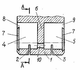025-01 Результат выполнения конструкторской разработки. Зубчатая передача содержит колесо с податливым венцом 1 с радиальными прорезями 2 и 3 малой ширины и высотой, равной высоте головки зуба (см. рисунок). С торцовых поверхностей венца 1 в каждом зубе выполнены карманы 4 и 5, которые разделены перегородкой 6. Каждый карман закрыт планкой 7, при этом полости карманов у ножки зуба остаются открытыми, образуя протоки 8 и 9 для жидкостного смазочного материала.
