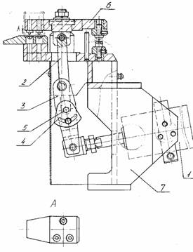 Описание Результат выполнения конструкторской разработки. Приспособление состоит из корпуса 7 (см. рисунок), к которому крепится пневмоцилиндр 1, приводящий в движение систему рычагов 2 и 3, связанных с пластиной 6, к которой крепятся бойки. Сектор 4 фиксирует положение эксцентрика 5, а эксцентрик регулирует ход пластины 6. Приспособление для расклепки Приспособление универсально, так как позволяет клепать с двух сторон, компактно. |