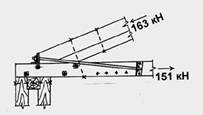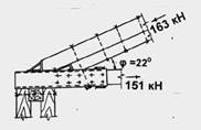 шпонках и болтах диаметром 16 мм. Соединения: в опорном узле на вырубках с четырьмя зубьями; в коньке - упором; в примыкании стойки и распорки к верхнему поясу - трехлобовым упором. Крепление стоек к поясам фермы с помощью полосового металла на болтах. Монтажный стык в нижнем поясе перекрыт «щековыми» накладками на металлических связях (болты и гвозди). Три фермы цеха в зоне опирания их на стойки вследствие разрушения нижнего пояса в ослабленном врезками сечениях от загнивания древесины и потери несущей способности материала находились в неудовлетворительном состоянии. Также древесина стоек на границе с дневной поверхностью поражена бурой гнилью на глубину до 80 мм. Отдельные стойки выходят из плоскости и имеют отклонение от вертикали до 5-15 см, соединения расстроены и ослаблены; отсутствуют необходимые хомуты и болты. С целью восстановления эксплуатационных свойств конструкций покрытия были разработаны и подтверждены необходимыми статистическими расчетами три варианта усиления ферм цеха, представленных на рис. 1, 2, 3. Расчетными усилиями в элементах фермы приняты: верхний пояс - 163 кН, нижний пояс - 151 кН, распорка - 82 кН. Для выполнения расчетов усиления приняты следующие предпосылки: одностороннее загружение не рассматривалось; проверка элементов фермы на прочность не рассматривалась в виду отсутствия дефектов эксплуатации; расчетное усилие для опорного узлаf=163 кН иf=151 кН. |