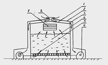 Описание Результат выполнения конструкторской разработки. В сенохранилище установлен коллектор (см. рис.). Стены и крыша хранилища выполнены из листовой стали и окрашены в черный цвет. На расстоянии 0,5 м от крыши и стен установлена полиэтиленовая пленка, которая закреплена на металлическом каркасе деревянными брусками. Одной стороной коллектор обращен к востоку и подвержен солнечному излучению с восхода до полудня. С полудня до заката солнечный свет падает на другую половину коллектора, обращенную к западу. При работе вентиляторов воздух отсасывается из под козырька и в тепловой камере нагревается от крыши и стен хранилища. Затем воздух нагнетается через камеру в слой сена и выходит из хранилища через окно. В период воздействия солнца на теплопринимающую поверхность КПД коллектора равен 0,37. За световой период суток коллектор обеспечивает снижение относительной влажности воздуха на 8-13% в зависимости от погодных условий. Снижение влажности воздуха происходит также и ночью. Конструктивные элементы коллектора оказывают сопротивление движению воздуха по тепловой камере. В связи с этим производительность вентиляторов снижается на 5-8%.