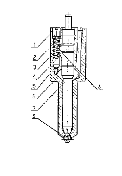 Описание Описание к ИЛ №61-015-02 Результат выполнения конструкторской разработки. Распылитель форсунки для двигателя внутреннего сгорания состоит из регулировочного винта 1 (см.рисунок), пружины клапана 2, дифференциального клапана 5, корпуса 6, запорной иглы 7. Запорная игла имеет кольцевую проточку 4, соединенную каналом 3 в корпусе распылителя 6 с полостью над дифференциальным клапаном. В корпусе распылителя имеются компенсационная полость 8, соединенная с топливоподводящим каналом, в которой дифференциальный клапан под действием пружины прижимается к запорной конической поверхности, образуя герметичное соединение, а также сопловые отверстия 9, расположенные попарно таким образом, что каждая пара имеет одно отверстие в запорной конусе седла распылителя, а второе в колодце распылителя, что обеспечивает впрыскивание топлива методом соударяющихся струй. Устройство работает следующим образом. При впрыскивании топлива методом соударяющихся струй изменение формы топливного факела, а именно"раскрытие"и"схлопывание"полого конуса топливного факела, происходит на этапах подъема и опускания запорной иглы, когда существует изменение разности давлений топлива на входе во встречные сопловые отверстия. Данное устройство обеспечивает минимум два этапа подъема и опускания иглы. При посадке запорной иглы форсунки в седло дифференциальный клапан выполняет демпфирование возникающих волн давления в системе, так как в этот момент он находится в промежуточном положении, а значение давления, при котором поисходит посадка его в седло, меньше давления посадки запорной иглы форсунки. При поддержании остаточного давления в системе топливо из компенсационной полости под воздействием пружины вытесняется дифференциальным клапаном, тем самым создавая необходимое остаточное давление в трубопроводе высокого давления. Применение данной конструкции распылителя позволяет повысить эффективность преимущества впрыскивания топлива методом соударяющихся струй на всех режимах работы дизеля.