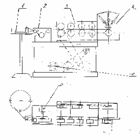Описание Результат выполнения конструкторской разработки. Устройство для изготовления гибких воздуховодов содержит бухтодержатель 1 (см.схему), механизм правки и смазки 2, механизм формовки ленты 3, механизм навивки воздуховода 4, механизм счета 5, электрический и ручной привод 6. Все механизмы установлены на общей станине (бухтодержатель может быть установлен отдельно), содержащей электрический и ручной привод, причем механизм формовки ленты и механизм навивки воздуховода согласованы по скорости. Узел правки и смазки устанавливается в зависимости от характеристик исходного материала - металлической ленты и содержит емкость для смазывающей жидкости. Механизм формовки ленты содержит две пары формующих роликов и пару роликов, которые формируют замковую часть навиваемого профиля. Механизм навивки воздуховода имеет в своем составе пару навивочных роликов, вспомогательные ролики и упор-линейку с флажком. Процесс формовки и навивки может быть раздельным, для этого после механизма формовки ленты можно установить наматывающий бухтодержатель, а перед механизмом навивки - подающий бухтодержатель, тогда процесс формовки и навивки происходит в два этапа и совмещение по скорости этих двух механизмов не является обязательным. Кроме этого, на станине может быть установлен механизм счета длины наматываемого воздуховода, привод которого осуществляется от движения ленты через механизм правки и смазки ленты. Для обеспечения герметичности и прочности воздуховода в месте соединения замковая часть навиваемого профиля выполнена с двойной закладкой материала по центру и пятикратной закладкой материала по краям замковой части. Электрооборудование устройства для изготовления гибких воздуховодов состоит из расположенных на станине электродвигателя, кнопочной станции, конечного выключателя и электрошкафа с пускорегулирующей аппаратурой. Вращение на формовочные ролики механизма формовки ленты передается от электродвигателя через ременную передачу, двухступенчатый редуктор, цепную и зубчатые передачи. Параллельно вращение может передаваться вручную через маховик, кулачковую муфту и ременную передачу на редуктор. Ролики механизма навивки воздуховода получают вращение от последнего вала, на котором расположена последняя пара роликов, калибрующих гофры и формующих замковую часть навиваемого профиля. Кнопочная станция оборудована кнопками"Пуск"и"Стоп". Ручной привод служит для заправки ленты под формовочные и навивочные ролики при первоначальном запуске оборудования. Упор-линейка с флажком отсчета предназначена для настройки навиваемого воздуховода на заданный диаметр. Для сопряжения роликов по межцентровому расстоянию и для создания необходимого усилия формовки и закатки замка гофрированного профиля имеются рукоятки зажима формовочных и навивочных роликов между собой. Для установки заданной длины навиваемого воздуховода в зависимости от диаметра воздуховода предусмотрен механизм счета, который может быть выполнен как программный счетчик с рукоятками набора и сброса показания. Для отключения электропривода при достижении воздуховодом заданной длины предназначен конечный выключатель. Устройство для изготовления гибких воздуховодов работает следующим образом. Бухту, например, алюминиевой ленты укладывают н