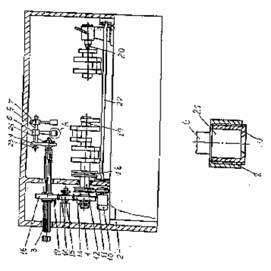 Описание 024-02 Результат выполнения конструкторской разработки. Установка состоит из корпуса 1 (см.рисунок), в верхней части которого смонтировано копировальное устройство, а в нижней - станина 2 с механизмом привода вращения шпинделя и пинолью. Копировальное устройство выполнено в виде шлицевого вала 3, на конце которого закреплен кривошип 4 с подвижным шипом 5. На подвижном шипе жестко закреплен держатель пистолета 6 и гиростабилизатор 7. Держатель пистолета состоит из цилиндра 8 с внутренней резьбой и втулки 9 с наружной резьбой. Механизм привода вращения шпинделя содержит электродвигатель 10 и ременную передачу 11. Привод копировального устройства осуществляется от шпинделя 12 установки посредством зубчатой цилиндрической передачи с передаточным числомu=1. Зубчатая цилиндрическая передача состоит из ведущей шестерни 13, закрепленной на шпинделе 12, промежуточной шестерни 14, закрепленной на оси 15, жестко связанной с корпусом, и ведомой шестерни 16, установленной на шлицевом валу с возможностью осевого перемещения с помощью рычага 17. Установка работает следующим образом. В планшайбу 18 крепится коленчатый вал 19 (например, двигателя автомобиля ЗИЛ-130) и фиксируется центром пиноли 20. При восстановлении коренных шеек коленчатого вала ведомая шестерня с помощью рычага выводится из зацепления с промежуточной шестерней, а кривошип с держателем пистолета и гиростабилизатором устанавливается в нижнюю мертвую точку так, чтобы держатель пистолета был напротив восстанавливаемой шейки. Втулкой устанавливается требуемая дистанция нанесения покрытия и в держатель крепится пистолет 21. После этого включают привод вращения шпинделя и пистолет для нанесения покрытия. Поскольку крутящий момент от шпинделя не передается на шлицевой вал, держатель пистолета и гиростабилизатор находятся в неподвижном состоянии, обеспечивая тем самым постоянную дистанцию нанесения покрытия на вращающуюся коренную шейку. После нанесения покрытия необходимой толщины на первую коренную шейку отключают пистолет, привод шпинделя. Путем осевого перемещения шлицевого вала относительно корпуса держатель пистолета устанавливают над следующей коренной шейкой. При нанесении покрытия на шатунную шейку ее устанавливают в нижнюю мертвую точку проворачиванием коленчатого вала вручную. Положение восстанавливаемой шатунной шейки в нижней мертвой точке контролируется с помощью контрольной планки 22. Держатель пистолета с гиростабилизатором устанавливают в нижнюю мертвую точку, и в этом положении ведомая шестерня с помощью рычага вводится в зацепление с промежуточной шестерней. Втулкой устанавливают необходимую дистанцию нанесения покрытия, после чего, предварительно ослабив гайку 24, устанавливают радиус кривошипа копировального устройства, равный радиусу кривошипа коленчатого вала. После этого включают привод вращения шпинделя установки. При этом крутящий момент со шпинделя передается на шлицевой вал копировального устройства посредством зубчтой передачи. Поскольку передаточное число зубчатой цилиндрической передачи равно 1, а радиус кривошипа копировального устройства равен радиусу кривошипа коленчатого вала, пистолет копирует вращательное движение восстанавливаемой шатунной шейки вокруг оси вращения шпинделя. Это обеспечивает нанесение равн