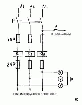 Описание Результат выполнения конструкторской и технологической разработки. Разработано устройство по автоматическому включению и отключению наружного освещения (см. рисунок). Устройство состоит из блока питания, собранного по мостовой схеме на 24 В, и исполнительной схемы, собранной на 2 транзисторах и реле. Базовым элементом схемы является датчик управления схемы. Датчик освещенности собран с высокой степенью чувствительности в широком диапазоне регулирования от заданной освещенности. В схеме предусмотрено переменное сопротивление, с помощью которого задается диапазон включения и отключения наружного освещения. По условиям техники безопасности проезжие дороги и тротуары в ночное время суток должны быть освещены, но освещение должно быть выключено, когда общее освещенность окружающей среды достигнет ниже или выше 7 люкс. Точность исполнения условий работы устройства зависит от датчика, который контролирует освещенность окружающей среды. Датчик размещают вне помещения. Отключающее устройство по управлению осветительными объектами может использоваться при любой мощности (будь то промышленный объект или населенный пункт). Данное устройство прошло промышленное испытание в течение 5 лет. Датчик 2 раза в году необходимо очищать от загрязнения. Преимуществами предлагаемого автомата являются: -высокая точность срабатывания в широком диапазоне настройки по желаемой освещенности в режимах включения и отключения освещения; -возможность управления как тиристорным силовым ключом, так и контактором; -экономия электроэнергии. Схема автоматического отключения наружного освещения: а) - общий вид; б) - вид ячейки Я 1 - Я 3; в) - схема подключения к линии наружного освещения |
