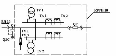 Описание Результат конструкторской разработки. Секционирующие пункты изготовляются на базе шкафов КРУН-10Л. Шкаф разделен перегородками на четыре отсека: линейного ввода, блока выдвижного выключателя с приводом, линейного вывода и аппаратуры управления и релейной защиты. В отсеке линейного ввода размещаются трансформаторы тока типа ТВК или ТЛМ и трансформаторы напряжения типа ОЛС-0,63/10 или НОМ-10. В отсеке линейного вывода для секционирующего пункта с АВР устанавливается второй комплект трансформаторов напряжения. Шкаф устанавливается на незаглубленном фундаменте высотой 0,8 м.