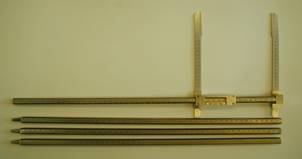 Описание к ИЛ № 29-441-02 Результат выполнения конструкторской разработки. Конструкторами ООО «Вереск» совместно с учеными Красноярской государственной медицинской академией разработан и изготавливается набор антропометрических инструментов, в состав которого входят антропометр, толстотный циркуль, скользящий циркуль, сколиметр и калипер. Антропометр(см. рис.1) - это прибор для измерения высоты отдельных точек тела над полом. Антропометр или штанговый циркуль металлический состоит из четырех полых металлических штанг, вставляющих друг в друга, в результате образуется сплошной стержень двухметровой длины. В разобранном виде верхняя штанга с линейками может служить штанговым циркулем. Антропометром можно измерять как в стационарных условиях, так и во время выездов и экспедиций.