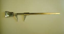 Рис. 2 Толстотный циркуль Скользящий циркуль(см. рис. 3) - это прибор, который представляет из себя штанговый циркуль с двумя ножками, одна из которых подвижная по отношению к линейке с миллиметровыми делениями. Скользящий циркуль используется для измерения некоторых размеров головы (скулового, бигониального, верхней высоты и т.п.) и дистальных диаметров конечностей. Измерения толстотным и скользящим циркулями производится с точностью до 1 мм.
