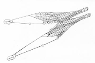 Рациональная форма трала позволяет при большом вертикальном и горизонтальном раскрытии создавать небольшое гидродинамическое сопротивление. В результате от судна требуется меньшая тяговая мощность, экономится топливо. Сетная часть трала изготавливается из полиэтиленовых или капроновых делей. Трал спроектирован для использования с 4-пластными мешками. . |