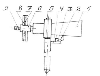 Состоит из флюгера 1 (см рис.), толкателя 2, камертона 3, держателя 4, стойки 5, вертушки 6, клея 7, зеркальной пленки 8, гайки 9. На ветреном месте стойку приспособления заглубляют в грунт. Под воздействием давления ветра на лопатки вертушки, покрытые зеркальной пленкой, вертушка начинает вращаться. В солнечную погоду лопатки отражают падающие лучи солнца по защищаемой площади. При этом флюгер поворачивается по направлению движения ветра, ударяя толкателем по камертонам, которые начинают звучать. Издаваемый звук настроен на частоту голоса кошки, что дополнительно отпугивает птиц с участка.
