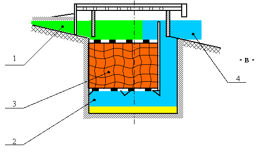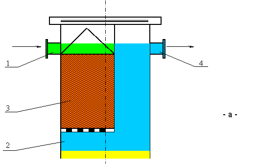 Описание Результат выполнения научно-исследовательской работы. Жироуловители локальные разработаны и поставляются трех типов: после-приборные, узловые (внутри-подъездные на выпусках) и дворовые колодезные. Исполнение жироуловителей (рис.): трубное (а), канальное (б), лотковое (в), колодезное (сосуд в сосуде) и блочно-модульное. Конструкция их включает приемную часть 1, осадительную часть 2 крупных механических загрязнений, жироулавливающую часть 3 оборудованную люком или смотровым фланцем и выпускную часть 4. Устройство может комплектоваться датчиком уровня воды, указывающим степень загрязнения жироуловителя. Приемная часть предназначена и конструктивно исполняется под существующие или проектируемые трубу, сеть, канал, лоток, колодец. Осадительная часть (отсек) предназначена для механического улавливания крупных загрязнений и представляет собой предотстойник, гидрозатвор. Отсек оборудован прочисткой. Жироулавливающий отсек нескольких модификаций и соответственно конструкций, представляет собою цилиндрический, прямоугольный или фильтрпатронный каркас, собственно жироулавливающий элемент - преимущественно из жиросорбирующего синтетического, чаще отжимаемого высокопористого или нитчатого материала. Элемент съемный.