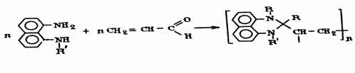 где r - отсутствует, Н; rў= h, c 6h 5; n - c 6h 4ch 3, с молекулярной массой 660-1033. Предлагаемый полимеры получают полимеризацией акролеина и производных перимидина в бензоле при комнатной температуре по следующей схеме: