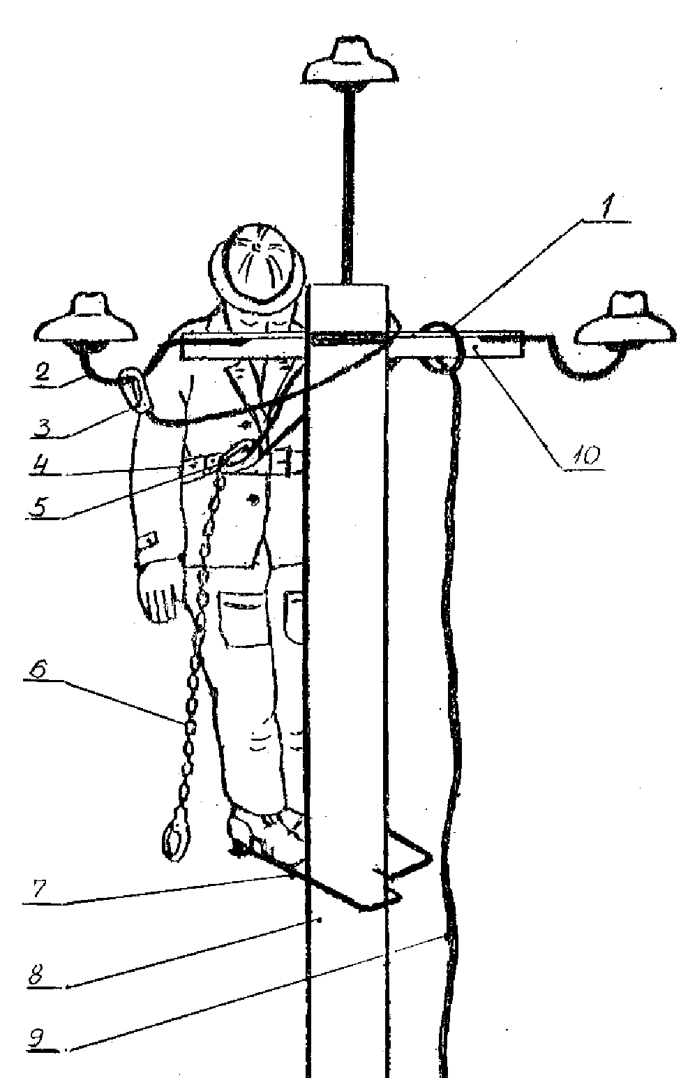 Назначение Оперативное спускание с опоры на землю попавшего под напряжение электромонтера с помощью одного человека |