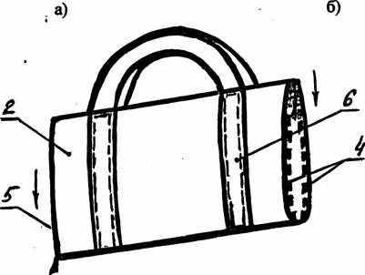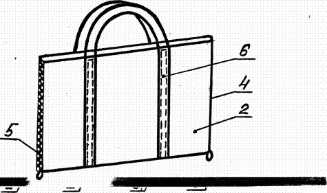 Описание Результат выполнения научно-исследовательской разработки. Цель изобретения - расширить функциональность возможности пляжного одеяла и удобство его переноски за счет использования принципов трансформации. В результате анализа патентной литературы прототип выявлен не был. Сущность предполагаемого изобретения состоит в том* что многофункциональное пляжное одеяло для отдыха, содержащее лицевую и изнаночную стороны, неразъемно-соединенные между собой по периметру, на лицевой стороне которого настрочены части разъемных текстильных застежек - «молний» и замкнутый контур текстильной тесьмы таким образом, что при складывании продольных сторон одеяла изнаночной стороной внутрь, накладывая их одна на другую, складывании торцевых сторон одеяла по поперечной линии сгиба, перегибании одеяла по поперечной линии сгиба и застегивании частей текстильных застежек - «молний», одеяло преобразуется в сумку, ручками которой служат не настроченные торцевые участки текстильной тесьмы. Предполагаемое изобретение представлено на: фиг. 1 - общий вид многофункционального пляжного одеяла для отдыха и общий вид сумки; фиг. 2 - процесс преобразования многофункционального пляжного одеяла для отдыха в сумку. Трансформируемое пляжное одеяло для отдыха прямоугольной формы содержит лицевую и изнаночную стороны, неразъемно-соединенные между собой по периметру. На фиг. 1а представлена лицевая сторона одеяла, которая скомбинирована из трех продольных полос материала: первая 1 и третья 3 - боковые, а вторая 2 - центральная. От средней линии поперечного сгиба одеяла в противоположные стороны на расстоянии не менее 1/4 длины одеяла в швы стачивания продольных полос материала 1 и 2,2 и 3 втачаны части текстильных застежек - «молний» 4, 5. На центральной полосе материала 2 продольно настрочен замкнутый контур текстильной тесьмы 6, причем места настрачивания параллельный соответствуют по длине втачанным текстильным застежкам - «молниям» 4, ,5, и отстоят от них 10-15 см соответственно с каждой стороны. Таким образом остаются не настроченными торцевые участки замкнутого контура тесьмы. В результате полученное одеяло имеет боковые стороны, соответствующие подлине стороне боковых полос материала, и торцевые стороны, соответствующие ширине стачанных трех полос материала. Преобразование одеяла в сумку осуществляется следующим образом (Фиг. 2). Продольные стороны одеяла складываются изнаночной стороной внутрь, накладываясь одна на другую таким образом, что части разъемных застежек - «молний» 4,5 остаются на боковых сгибах свернутого одеяла (Фиг. 2а). Затем торцевые стороны одеяла также складываются внутрь до поперечной линии сгиба одеяла (Фиг. 2 (У)). Далее, перегибая одеяло по поперечной линии сгиба внутрь (Фиг. 2 в) и застегивая части текстильных застежек--<молний>> 4 и5, получаем сумку, ручками которой служат не настроченные торцевые участки замкнутого контура текстильной тесьмы 6 (Фиг. 1(5)). Пляжное одеяло предназначено для загородного отдыха на природе, конструкция одеяла способствует удобству переноски его на любые расстояния. Кроме того сумка, получаемая в результате трансформации одеяла, может быть использована дли: переноски любых других пляжных принадлежностей и вещей, необходимых для отдыха. Конструкция предлагаемого варианта пляжного одеяла технол