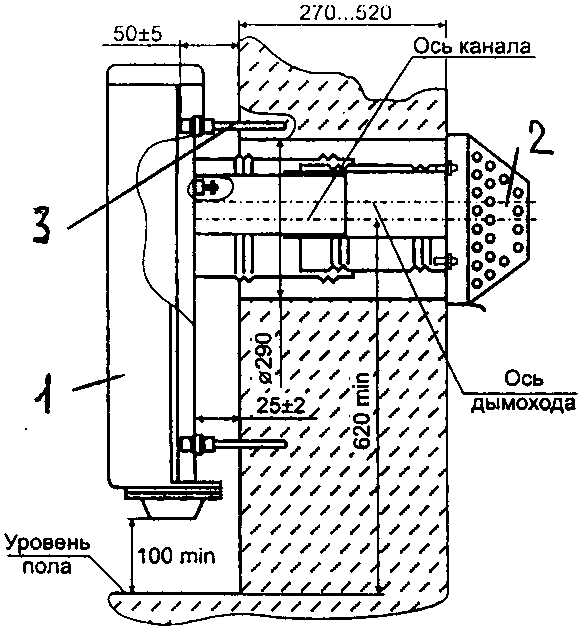 Результат конструкторской разработки. В связи с переводом с централизованного отопления многоэтажных домов (от котельной) на индивидуальное, возникла необходимость в каждой квартире устанавливать индивидуальные отопительные аппараты, работающие на природном газе или электрические. Предложено на кухне устанавливать газовый аппарат АКГВ-7,4. На рис.1 представлен общий вид аппарата и его установка. Он состоит из корпуса 1 с газогорелочным устройством и дымохода 2 o250 мм. Крепят его к наружной стене на кронштейнах 3. Подвод газа осуществляется гибким шлангом o15 мм. Диаметр патрубка для соединения с системой водяного отопления составляет Принцип действия: при включении газа производят розжиг газогорелочного устройства, нагретая вода до 90° подается по трубам по комнатам квартиры на отопление. Вместо дымохода в кирпичной кладке стен предусмотрено конструкцией наличие в наружной стене выпускного канала газохода o290 мм. Этот же канал является одновременно и впускным воздуховодом. Кроме этого, аппарат является настенным и предназначен как для отопления, так и для горячего водоснабжения при подогреве до 50-60°С. Установка аппарата – это оптимальный вариант перевода региональных городов и поселков на поквартирное отопление с максимальной адаптацией работы к условиям эксплуатации. |